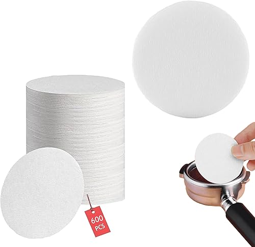 Lot de 600 filtres en papier expresso - 58,5 mm - Pour porte-filtre de 58 mm - Ronds et non blanchis - Compatible avec de nombreuses cafetières - Papier blanc (58,5 mm)
