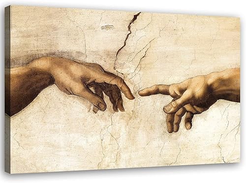 Feeby Impression sur Toile Intissee La création d'Adam Michel-Ange Reproduction 120x80 cm Art Image Deco Artistique Salon Esthétique Mains Voûte Chapelle Sixtine beige