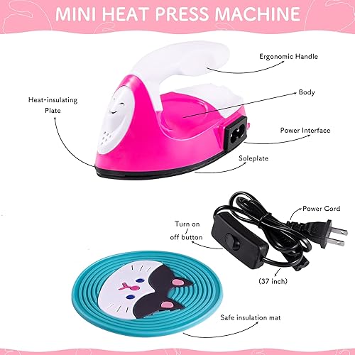 GYBOOM Mini presse à chaud pour machine à repasser électrique avec base de chargement Accessoires pour le transfert de projets en vinyle, portable et facile à manipuler pour vêtements DIY (rouge)