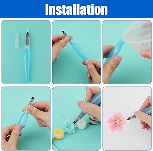 12pcs Pinceau Stylo Aquarelle, Pinceau à Réserve d'eau avec Couvercle et Pointes Assorties Fournitures Dessin Peinture pour Peinture Artiste Marqueurs de Peinture Calligraphie (Bleu)