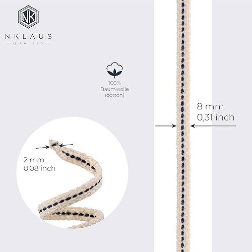 NKlaus Set 2x1 mètre 8mm 100% Coton Naturel Mèche Plate à torons Mèche Lanterne pour brûleur à Huile avec pétrole purifié 40268
