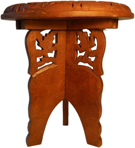 indischerbasar.de Guéridon démontable 25x23cm Tabouret Bois Marqueterie Ensemble 2 pièces Table Console