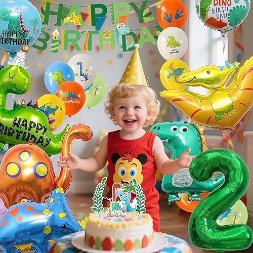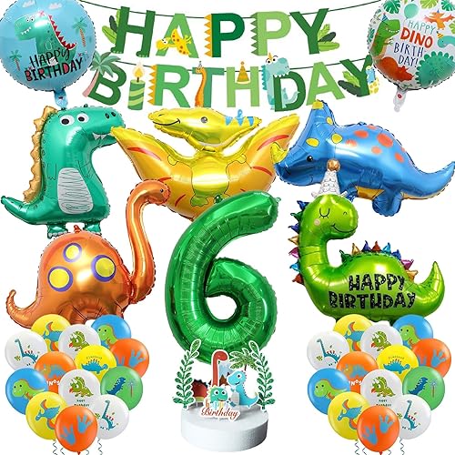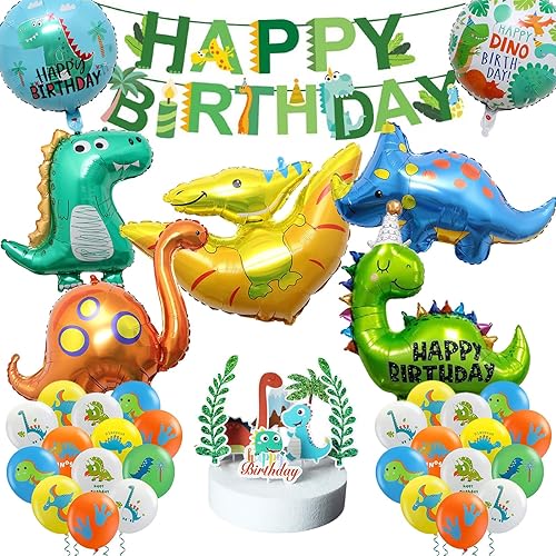 32pcs Decoration Anniversaire Dinosaure, Ballon Dinosaure, Ballons Dinosaure avec Happy Birthday Bannière, Jungle Thème Ballons, Décoration D'anniversaire Dinosaure pour 6 ans