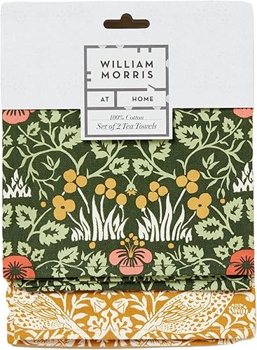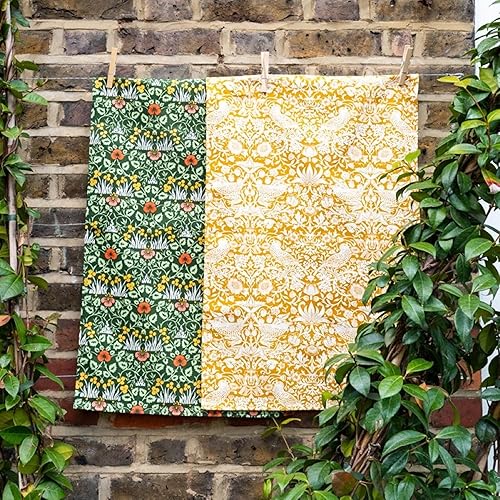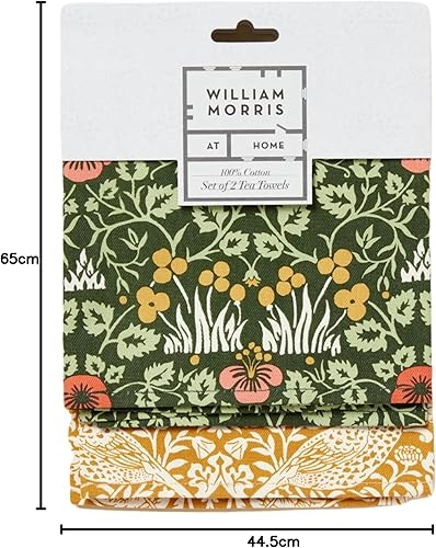 William Morris at Home Useful & Beautiful FG6847 Lot de 2 torchons de Cuisine 100% Coton Motif Fleur Rose et Jaune sur Fond doré 65 x 44,5 cm