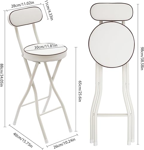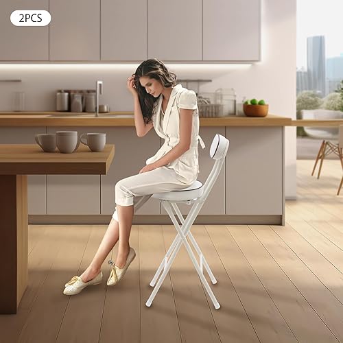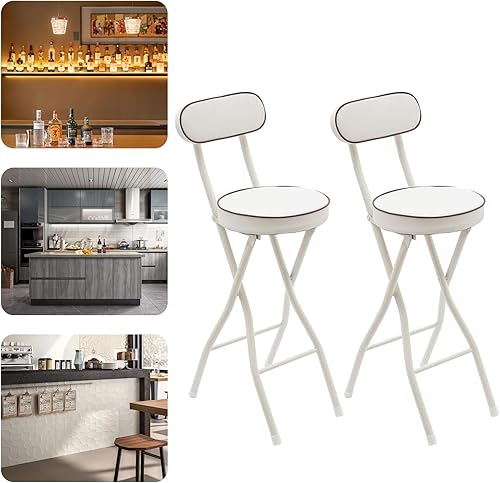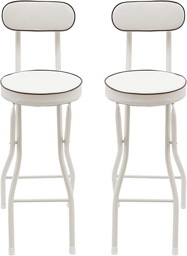 JUDEMII Lot de 2 chaises hautes pliantes et résistantes avec repose-pieds - Avec verrouillage de sécurité - Pour salon, garage, atelier, cuisine, bar - Blanc