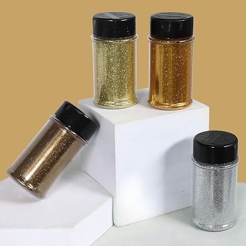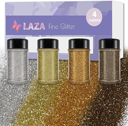Laza Ultra Fine Glitter 4 Colors 80ml Arts and Craft Glitter Mixed Ultra Fine Powder Sequins for Resin Nail Art Epoxy Tumbler Slime Decoration Weddings Card Flowers Scrapbooking - Classic Gold Silver