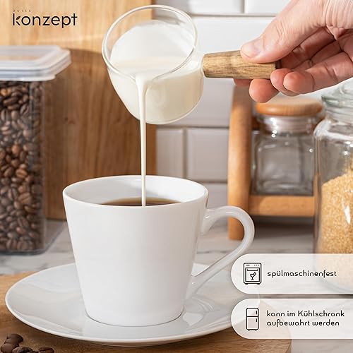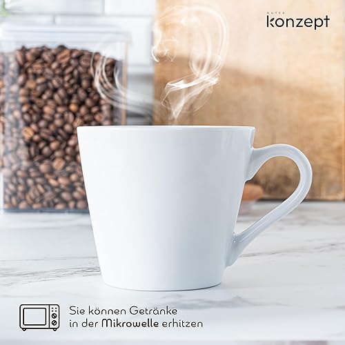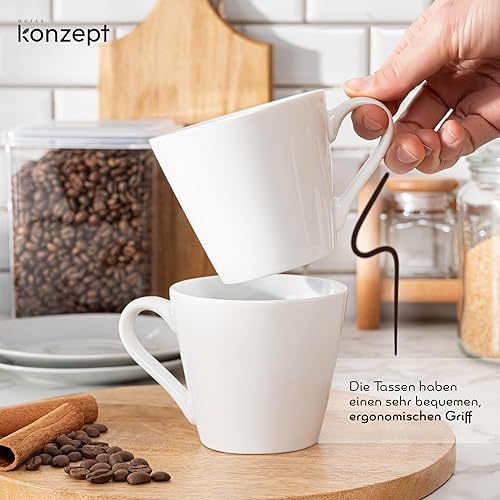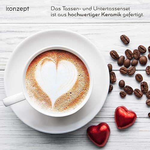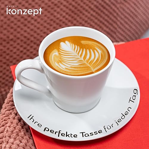 KONZEPT Set de 6 tasses à café avec soucoupes, 230 ml, blanc, tasses pour 6 personnes en céramique, à peindre, idéal pour le café, le thé, le cappucino