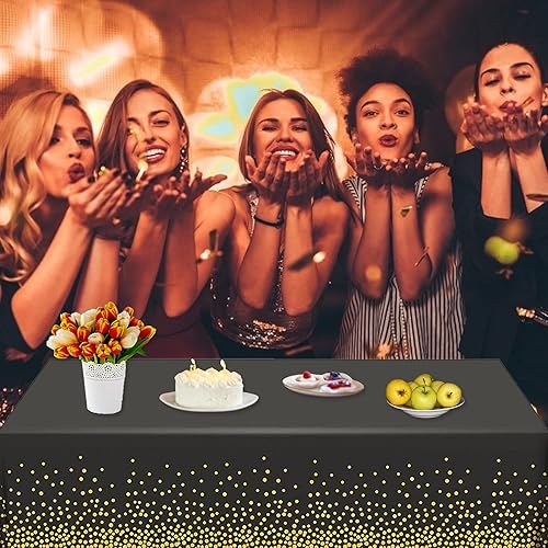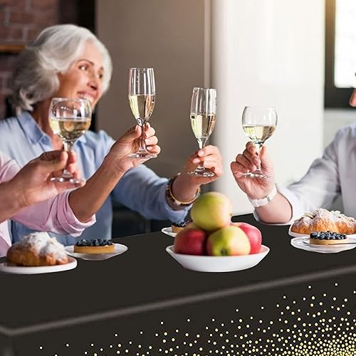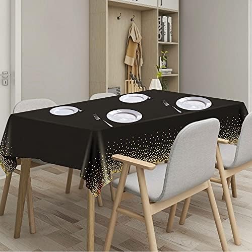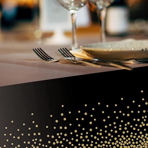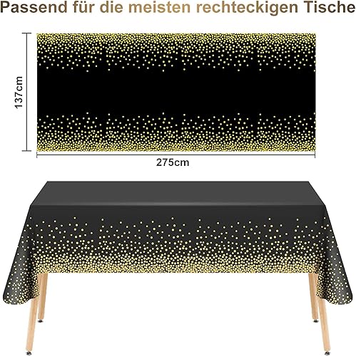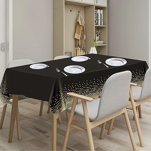 Lot de 4 nappes de fête, noires et dorées, jetables, pour table rectangulaire, pour pique-nique, mariage, fête d'anniversaire, Noël, remise de diplôme, cocktail, 137 x 275 cm (noir doré)