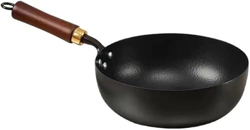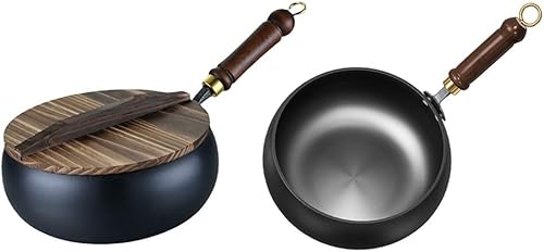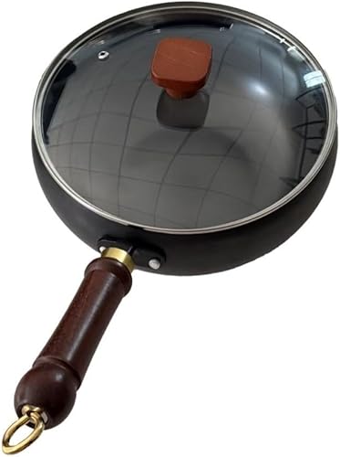 Poêle à frire en fer non revêtu, fabriquée à la main, design Big Belly pour une expérience de cuisson améliorée (casserole de 28 cm + couvercle en verre)