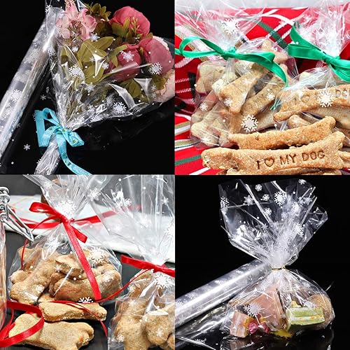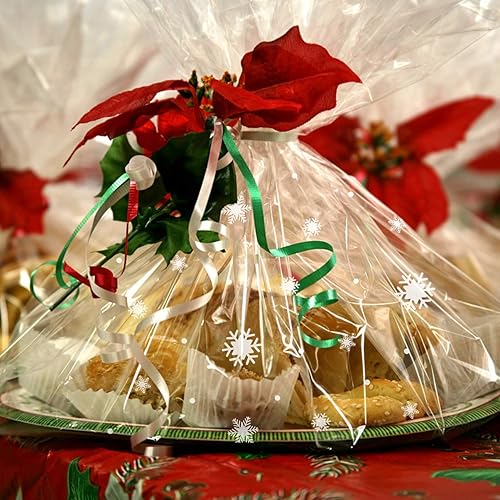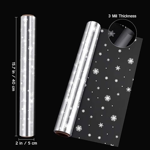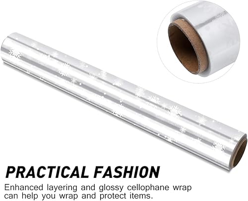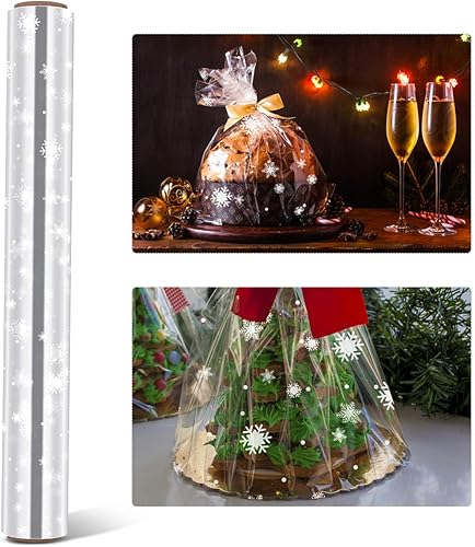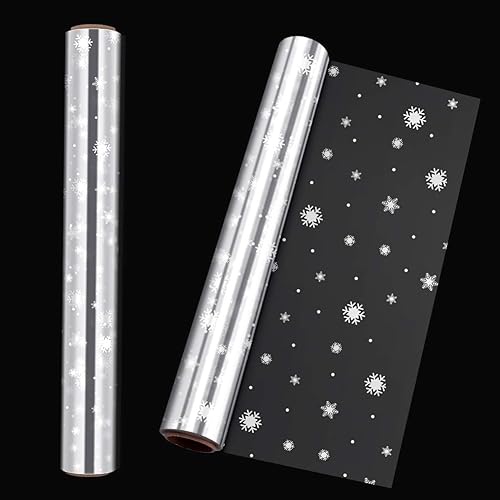 TOYANDONA Rouleau de Cellophane de 30 MX 80 Cm 3 Mil D'épaisseur Emballage de Cellophane de Noël Motif de Flocon de Neige Sacs de Cellophane pour Paniers-Cadeaux de Fleuriste Emballage