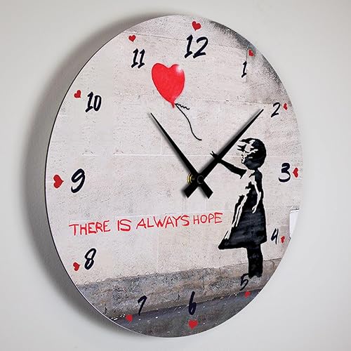 Giallobus - Horloge de Ligne Basic - Banksy - Fille de Ballon Rouge - Bois MDF - Basic 30x30 - Mécanisme Silencieux - Prêt à accrocher - Modernes