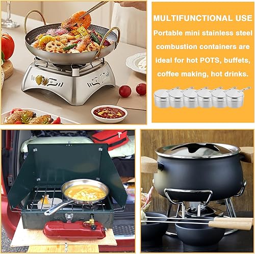 BYZESTY 6 Pièces Récipients À Pâte Combustible, Récipient pour Pâte À Combustible, Support De Brûleur Rcipients Pte Combustible en Acier Inoxydable Brûleur À Alcool pour Buffet, Fondue, Camping