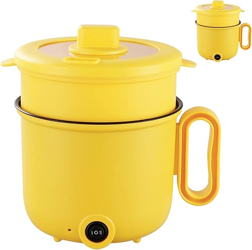 Marmite électrique, 1,5 L Portable Multifonctionnel Cuiseur à Riz Électrique Cuiseur Vapeur Rapide Nouilles Cuiseur Cuiseur à Riz Individuel pour Cuisson Soupe Riz Ragoûts Avoine (Double couche jaune)