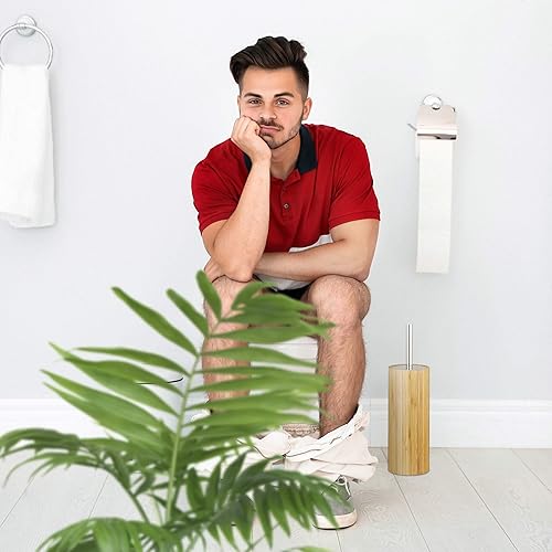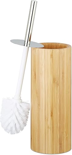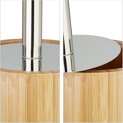 Relaxdays Porte brosse WC, porte-brosse toilettes bambou rond salle de bain support brosse HxD: 37,5 x 10,5 cm, nature