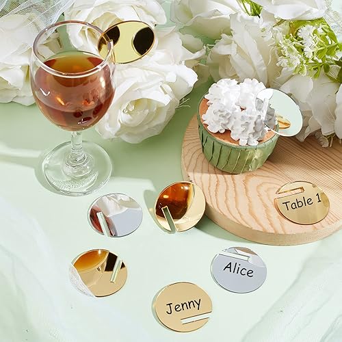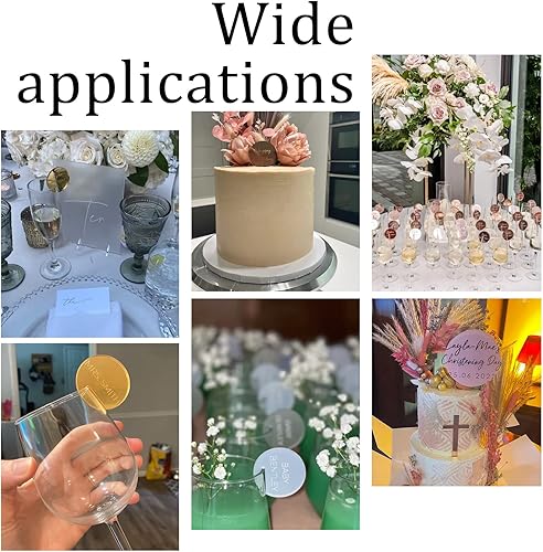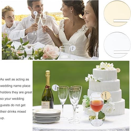 AHANDMAKER 32 Pcs Acrylique Cercle Boisson Tags, 2 Couleurs Blanc Fête Boisson Nom Étiquette Cercles Bricolage Acrylique Boisson Étiquette Verre à Vin Disque Cercle Charme, Or et Ruban