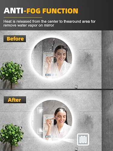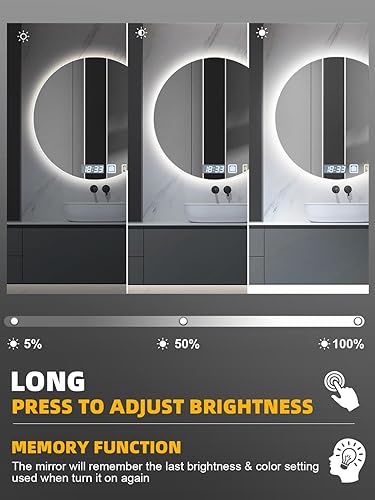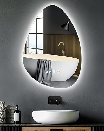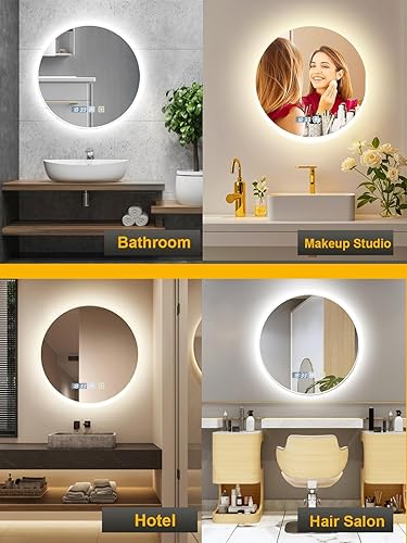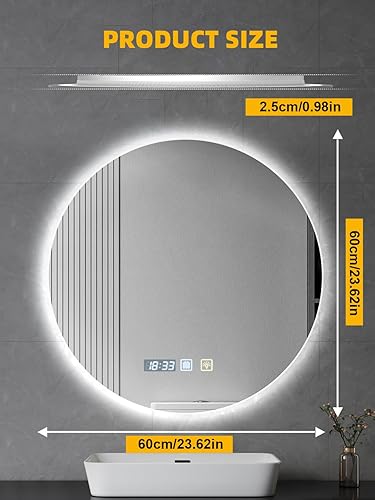 Miroir Salle de Bain avec Eclairage 80 x 60 cm,Miroir Salle de Bain Mural,Miroirs LED Sall𝐞 d𝐞 Ba𝐢n avec Anti-Buée,Interrupteur Tactile,Affichage Heure,3 Couleurs Lumière,Dimmable,Mémoire