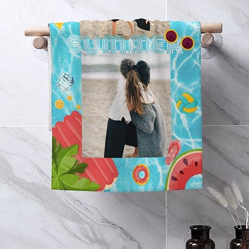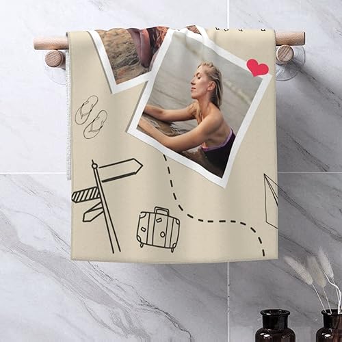 Serviette de Toilette Personnalisée, Serviette Personnalisée avec Texte de Nom de Photo, Serviette Photo Personnalisée pour Adultes Enfants pour Salle de Bain Cuisine Salle de Sport Hôtel Spa, 40x70cm