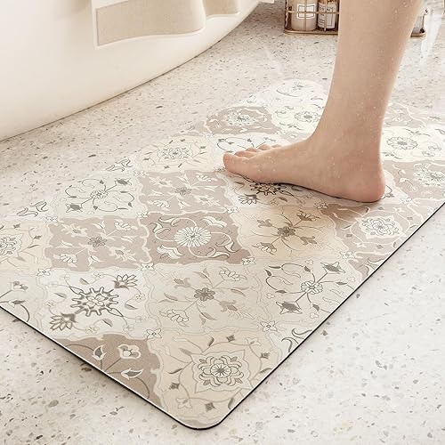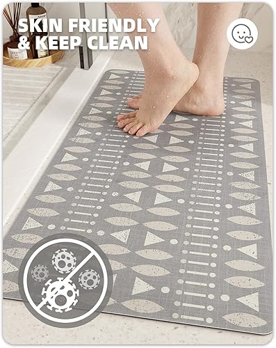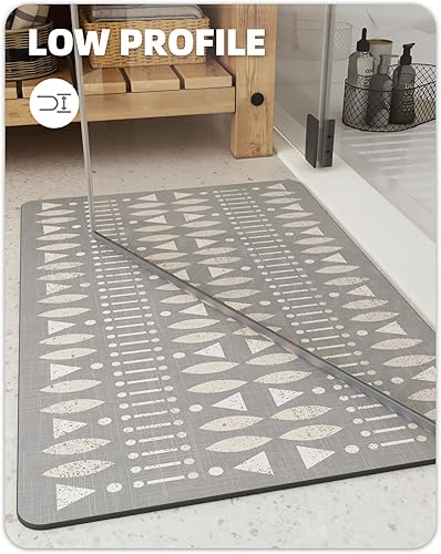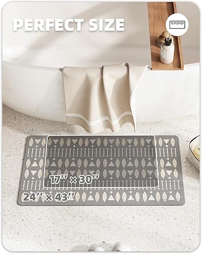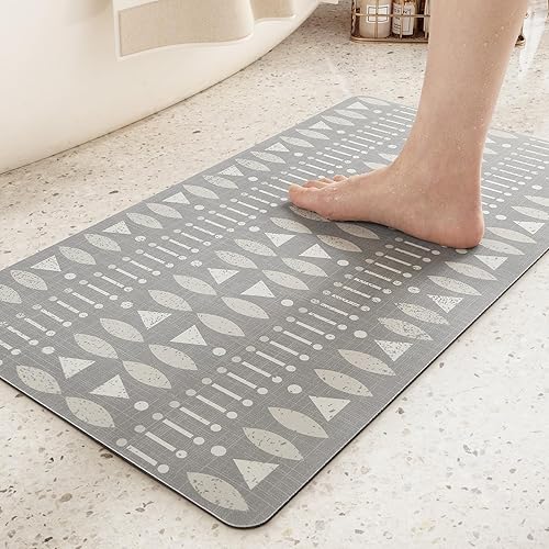 COLOR&GEOMETRY Tapis de Bain Antidérapant 60x110cm, Super Absorbant Diatomite Tapis Douche, Boho & Vintage Tapis Salle de Bain, Ultra Mince Tapis Bain pour Salles de Bains, Cuisines - Gris