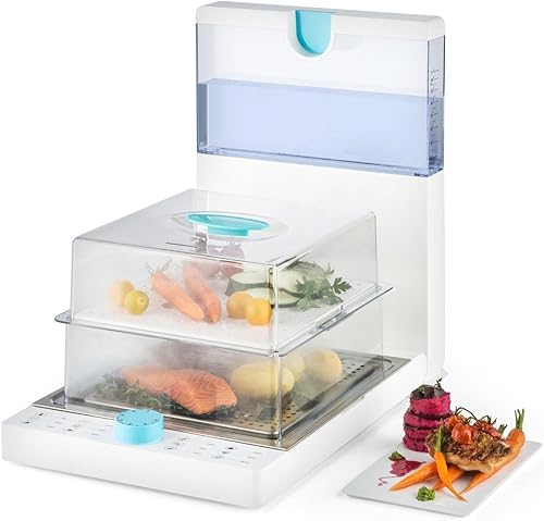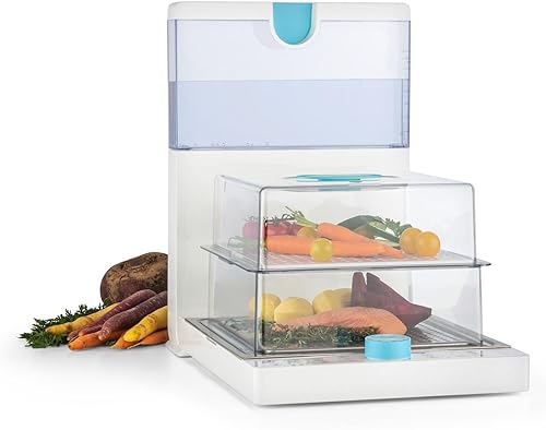 Klarstein Steam Spa - Cuiseur vapeur electrique compact repliable 2 compartiments de cuisson pour légumes, viande, poisson (1500 W, minuterie 60 min) – blanc