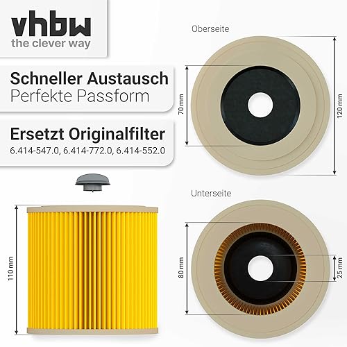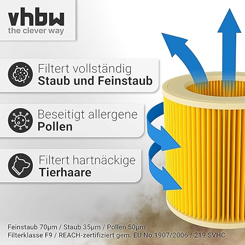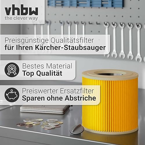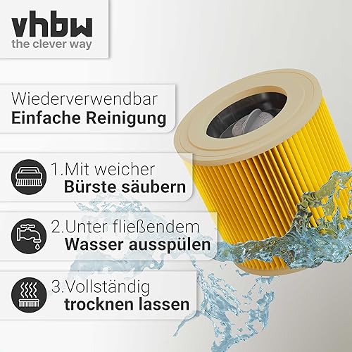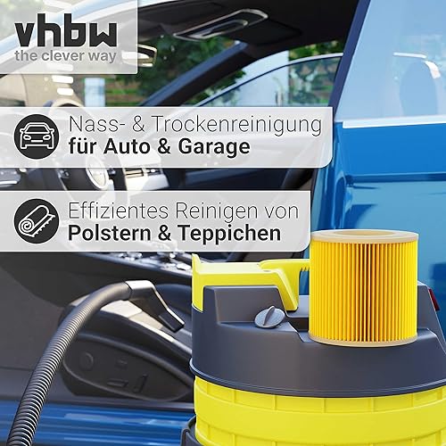 vhbw 1x filtre plissé compatible avec Kärcher WD 2 Plus V-12/4/18/C aspirateur - jaune