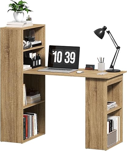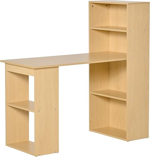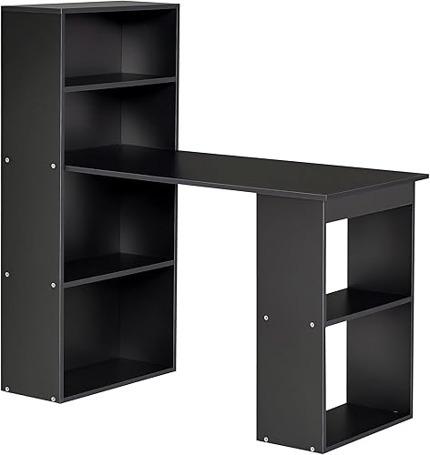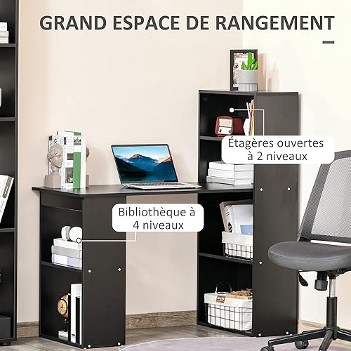 HOMCOM Bureau Informatique 120L x 55l x 120H cm bibliothèque adjacente Multi-rangements Blanc
