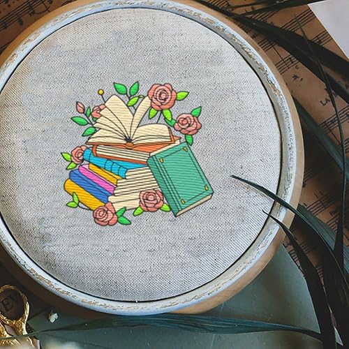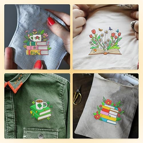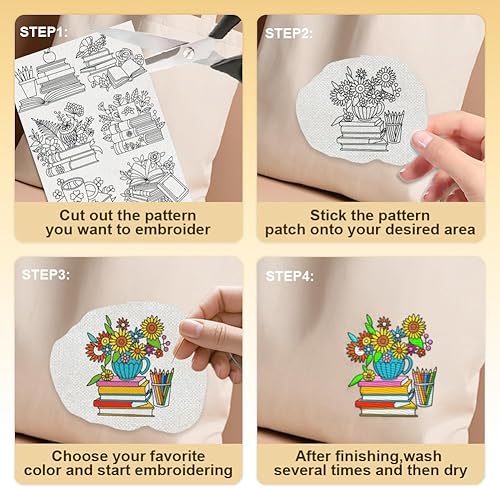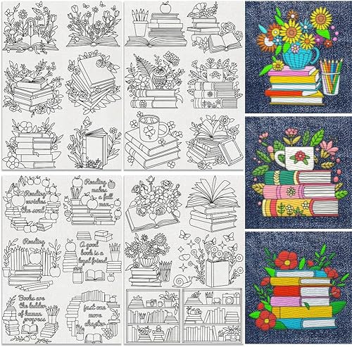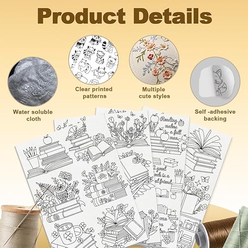 DOODLREAM Lot de 24 stabilisateurs de couture à la main solubles dans l'eau pour livres et fleurs 20,3 x 45,7 cm - Motif de broderie - 4 feuilles de bibliothèque - Feuille de bâton et de papier à