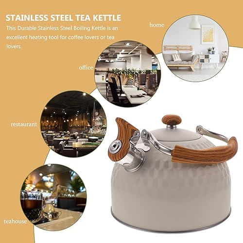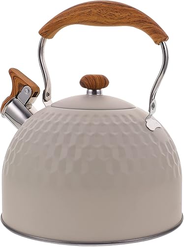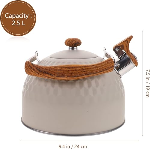 UPKOCH Bouilloire à sifflet en acier inoxydable 2,5 l - Bouilloire à sifflement - Bouilloire à sifflet - Bouilloire à induction - Pour cuisine, camping, pique- , beige