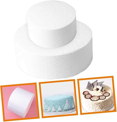 TOVINANNA 2 Pièces Mannequin De Gâteau Rond en Mousse Mannequins De Gâteaux Formes De Gâteaux en Mousse Disque Circulaire en Forme De Gâteau en Mousse La Modélisation Prothèse Blanche