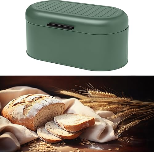 GALICJA ALEN Boîte à pain en acier revêtu par pulvérisation - Panier à pain moderne - Boîte de rangement pour pain - Boîte de rangement pour pain - 34 x 18 x 16 cm - Vert