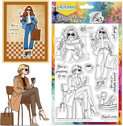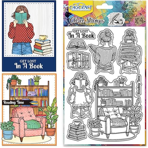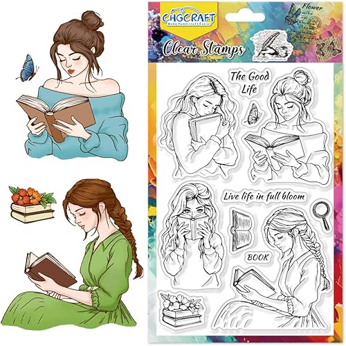 CHGCRAFT Tampons Transparents en Forme de Livre pour Femme Élégante Dame Lisant pour Loisirs Créatifs Scrapbooking Album Photo Décoratif 6.3x4.3 pouce