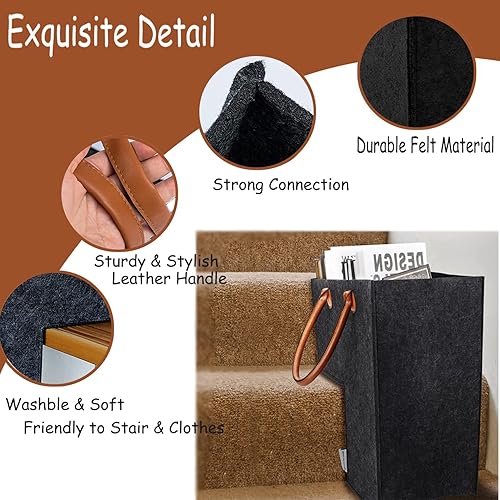 Panier d'escalier en feutre avec poignées, panier pliable en feutre pour escaliers à tapis et escaliers en bois, organiseur de rangement pour linge, jouets, décoration de la maison