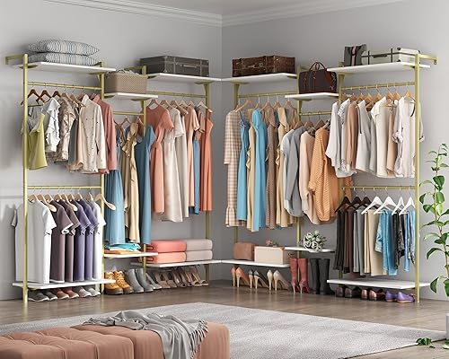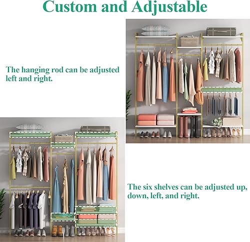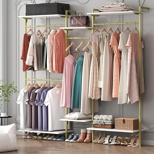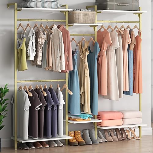 Tringle à vêtements, montage mural, charge lourde, ouverte, avec 4 tringles à vêtements et 6 étagères réglables à 6 niveaux, système d'étagères réglables