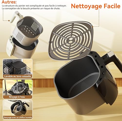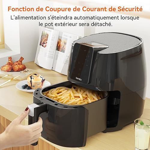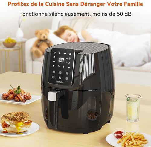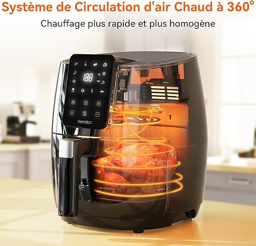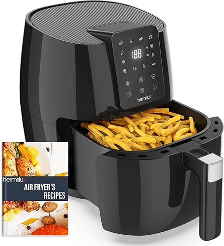 Hermitlux Air fryer chaud 5,5 L, Friteuse sans huile 10 programmes avec écran tactile digital LED, Préchauffage&Garder au chaud, avec recette, 1500W, Lavable au lave-vaisselle
