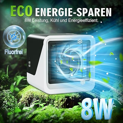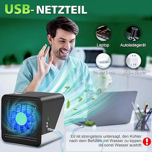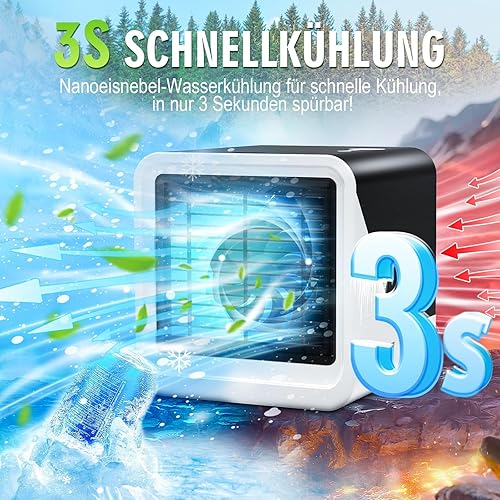Climatiseur mobile 3 en 1 de type C, silencieux, réservoir d'eau de 500 ml, 3 vitesses, 7 couleurs, veilleuse, sans tuyau d'évacuation avec poignée, convient pour chambre à coucher, bureau (Bureau)