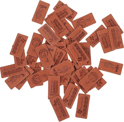 NUOBESTY 50 Pcs Étiquettes Faites À La Main Sacs Sacs Boggbags Étiquettes En Cuir Faites Coudre Sur Les De Couture En Cuir Embellissement Fait