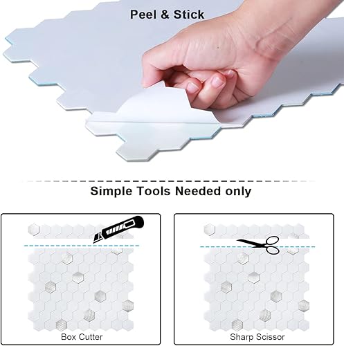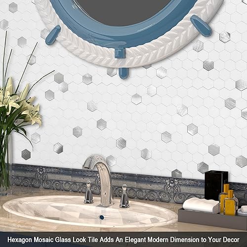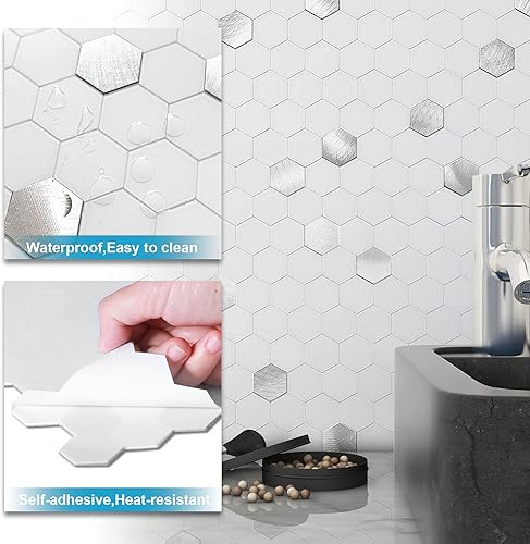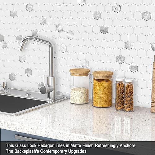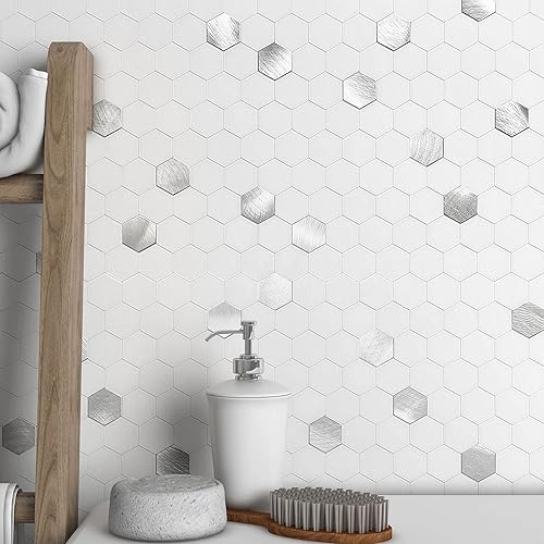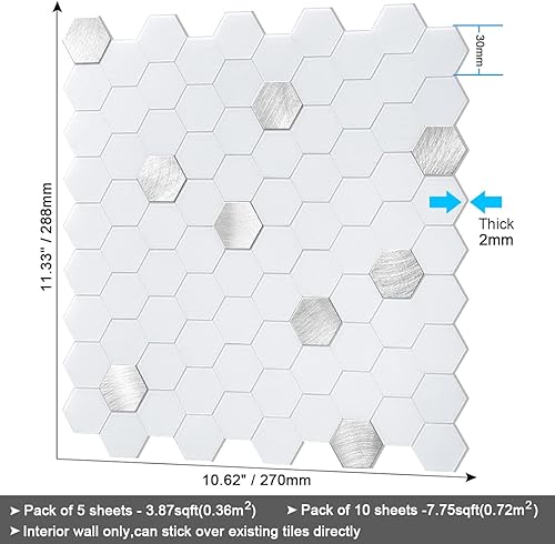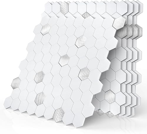 BeNice Lot de 5 feuilles d'autocollants pour cuisine, salle de bain, dosseret hexagonaux imperméables (blanc)