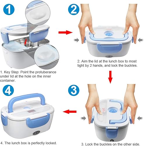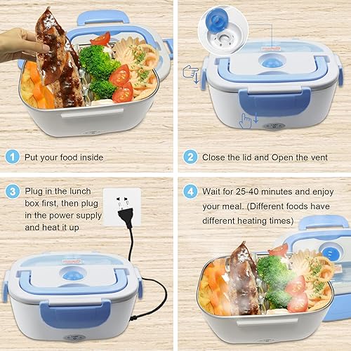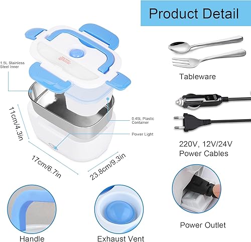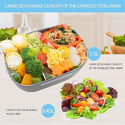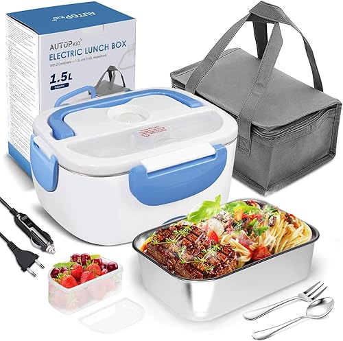 AUTOPkio Boîte Chauffante Lunch Box 1.5L Électrique Boîte à Lunch Thermique 12V 24V 220V 40W 3 en 1 Boîte Alimentaires Boîte Repas revêtement en Isolation en Acier Inoxydable Boîtes-Repas