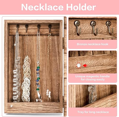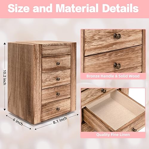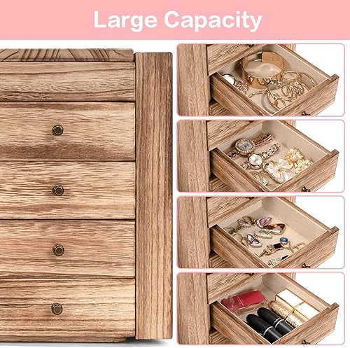 Emfogoo Boite a Bijoux Femme, Rangement Bijoux avec 4 Tiroirs et Miroirs, Grande Boite à Bijoux Bois, Boite Bijoux pour Collier, Anneau, des Boucles d'oreilles, Bracelet, Boite a Bijoux Fille