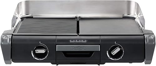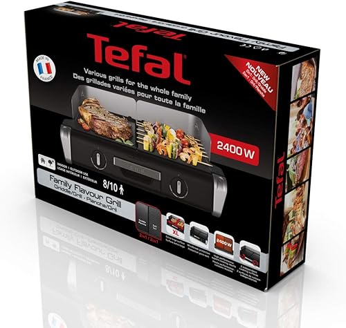 Tefal Barbecue Électrique Family Flavor 2en1, BBQ de Table, Grill Plancha, Thermostat Réglable, 2 Surfaces de Cuisson, 2400 W TG804D14 noir