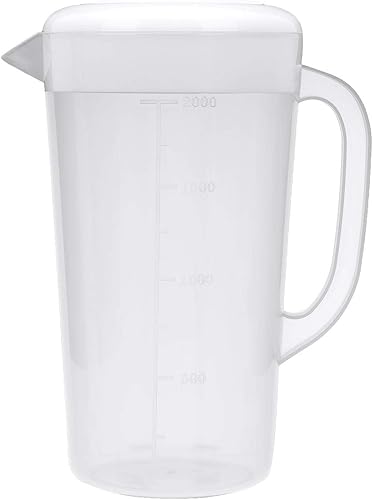 TiaoBug Pichet Carafe Plastique Doseur Plastique Gradué avec Couvercle Non Toxique Parfait pour Jus de Boisson Jarre à Thé 1500/20002500 ML Blanc 2.5 L