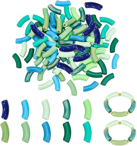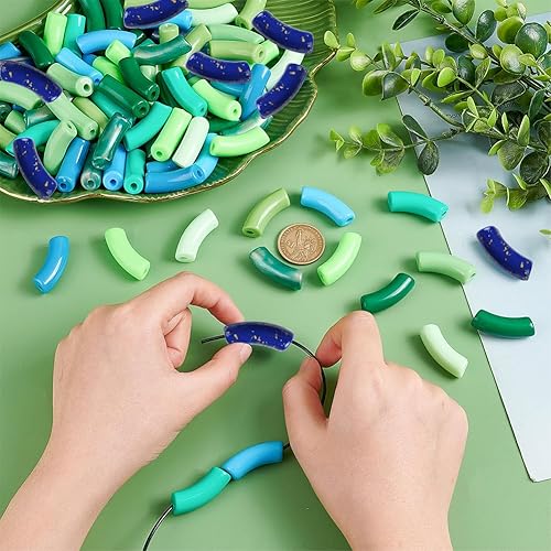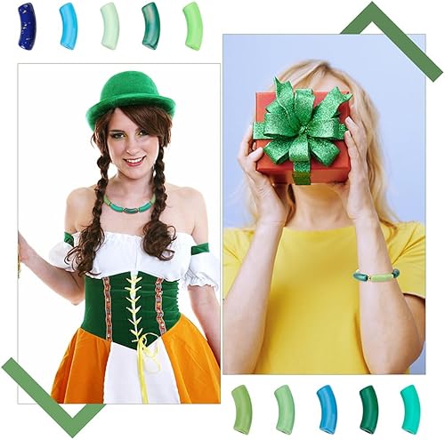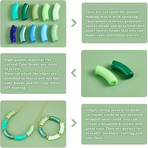 PH PandaHall 100pcs Perles de tube incurvées acryliques, 10 Colours Perles Intercalaires Opaques Perles de toboggan de nouilles à long tube pour la Saint Patrick bijoux collier bracelet Printemps été