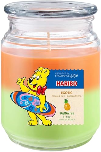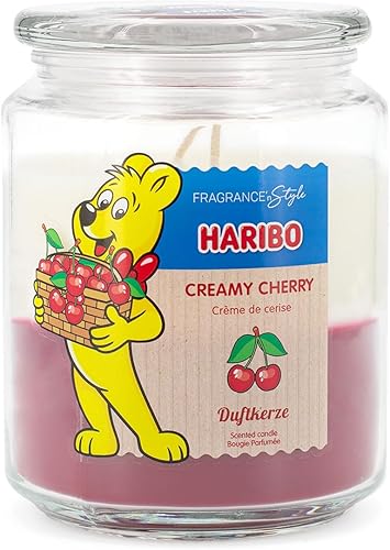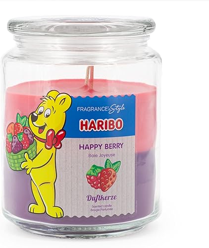 Haribo Bougie parfumée en verre avec couvercle Happy Berry - Bougie parfumée fruité - Longue durée de combustion (100 h) - 2 couches dans un verre - Grande bougie (510 g)