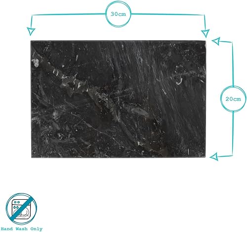 Argon Tableware 1x Noir 30cm x 20cm Planche à Découper Rectangulaire en Marbre - Antidérapant Cuisine Fromage Pain Viande Coupe Portion Comptoir Planches