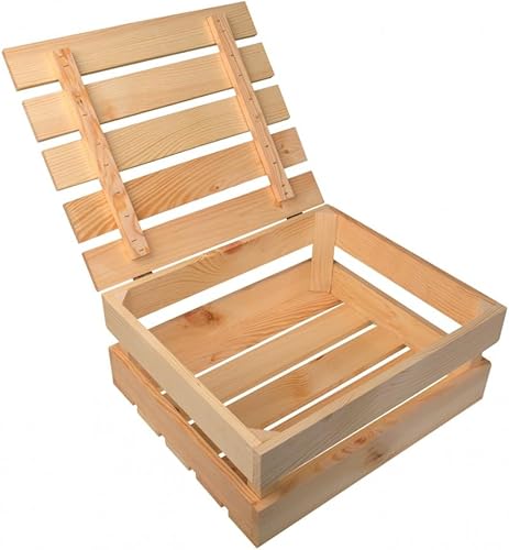 Wooden World - Caisse en bois - Boîte de rangement en bois de pin non peinte avec couvercle 30 x 35 x 15 cm