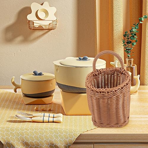 Panier suspendu pour portes en rotin - Décoration - Panier rond - Panier de rangement suspendu - Panier de rangement mural