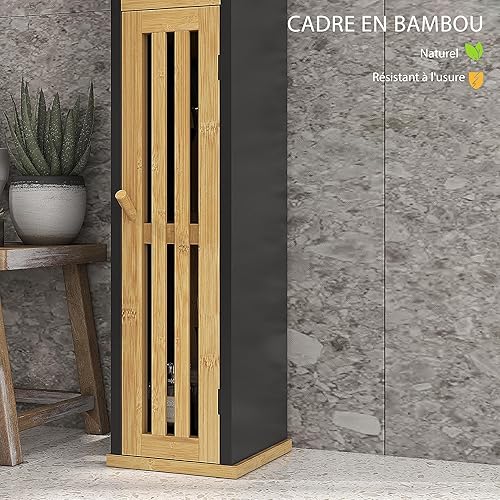 HOMCOM Meuble de Salle de Bain avec Support Papier Toilette - Rangement avec Barre Amovible - 2 Niveaux + Sortie Papier MDF Noir Bambou