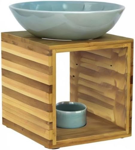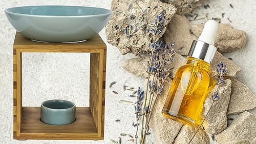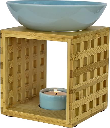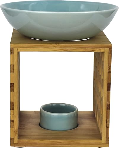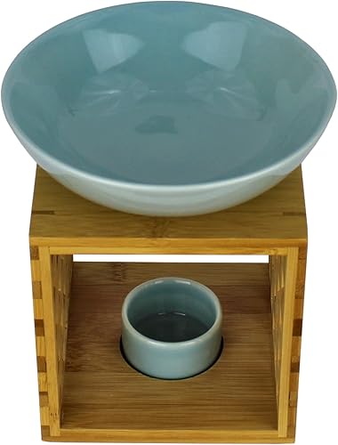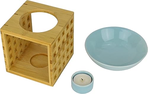 Bitto Lampe à parfum Riga bleu blanc avec bougie, grand bol, diffuseur brûle parfum, commerce équitable, lampe aromatique en bambou et céramique