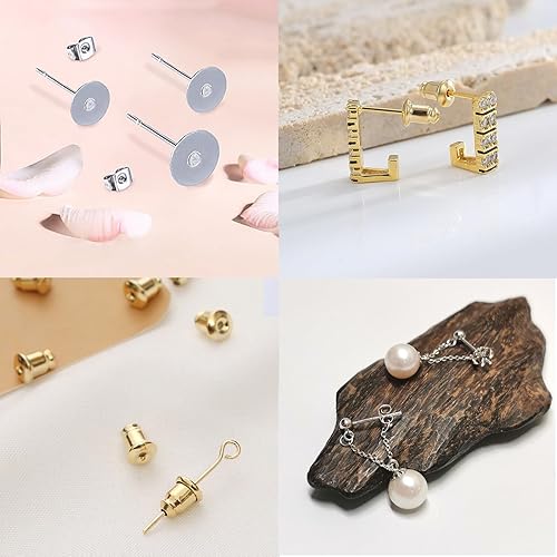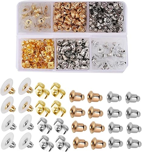 Ryaupy 130 PCS Fermoirs de Boucles d'oreilles, 6 Styles Boucles d'oreilles à Tige Créoles en Métal et Silicone Papillon Forme pour Fabrication de Boucles d'oreilles pour Femmes DIY