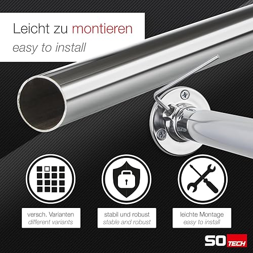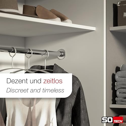 SOTECH 2 pièces Barre d'armoire 1500 mm RONDE Ø 25 mm chromée avec 4 supports de barre Barre de penderie