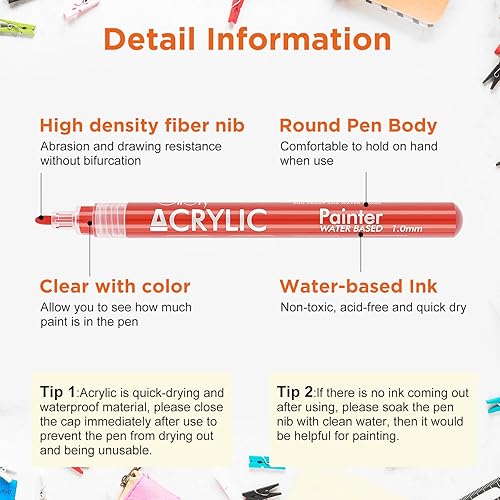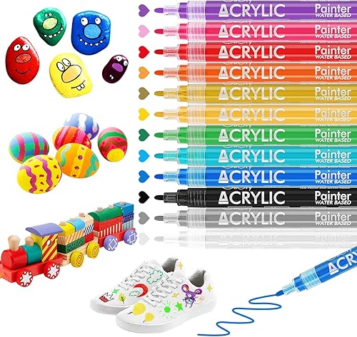 Giloty Peinture Acrylique Marqueur, 12 Couleurs Imperméable Marqueur Permanent, Stylos Acryliques à Base d'Huile à Séchage Rapide Feutre Indelebile Toutes Surfaces Pour Pierre, Pneu, Bois